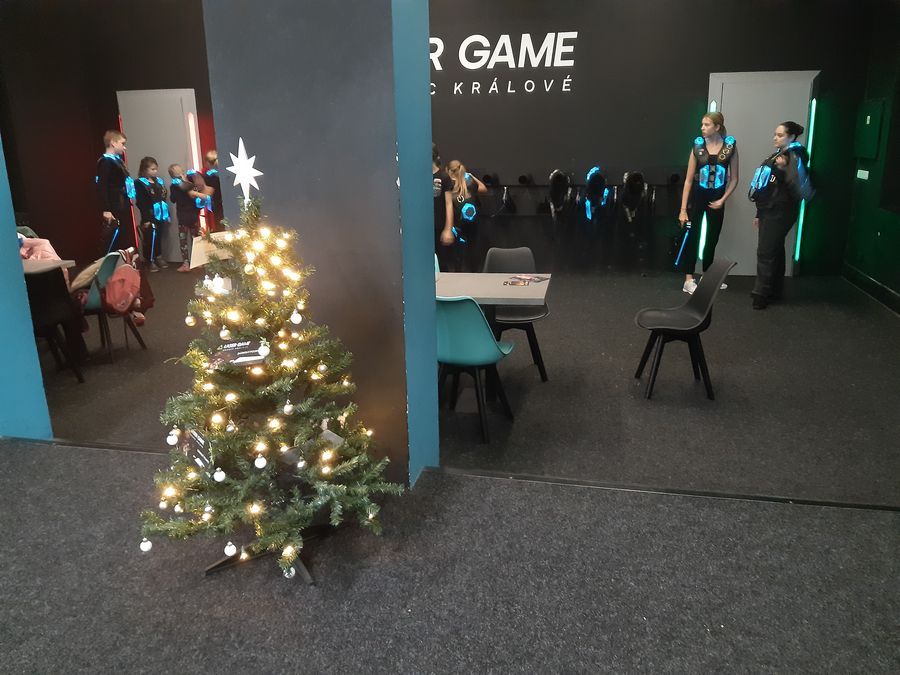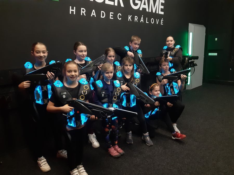 Ve středu 10. prosince se starší děti vypravily do arény Laser Game na akční týmovou hru. Nejdříve děti dostaly vesty a laserové zbraně. Následovalo seznámení s pravidly a hra mohla začít. V aréně byla kromě osvětlených překážek dokonalá tma a hustá mlha, kde děti překonávaly různé nástrahy a střílely po ostatních protihráčích neškodnými laserovými paprsky. V první hře bojovali všichni proti všem, potom se rozdělili do dvojic a na závěr si zahrála dvě družstva proti sobě. V potemnělé atmosféře arény si všichni užili spoustu zábavy a napětí.