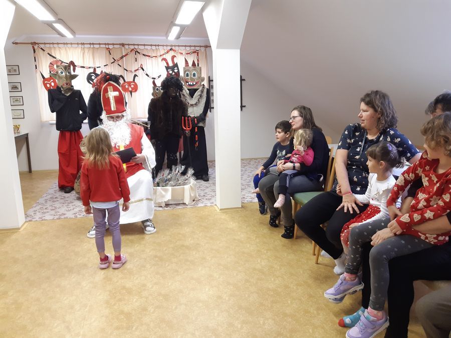 V sobotu 29. listopadu to v hasičárně pořádně ožilo. Mikuláš se svými čerty přišel zjistit, jestli děti celý rok nezlobily. Mikuláš zalistoval ve své knize, aby se dozvěděl o všech prohřešcích. Nějaké hříchy tam sice byly, děti ale slíbily, že se už polepší. Někteří si připravili básničku nebo písničku a i když těm nejmenším nějaké ty slzičky ukáply, nakonec všechno dobře dopadlo a Mikuláš všechny obdaroval balíčkem plným dobrot. Na závěr se všichni podívali na peklo a ti nejodvážnější se vyfotili s čerty.